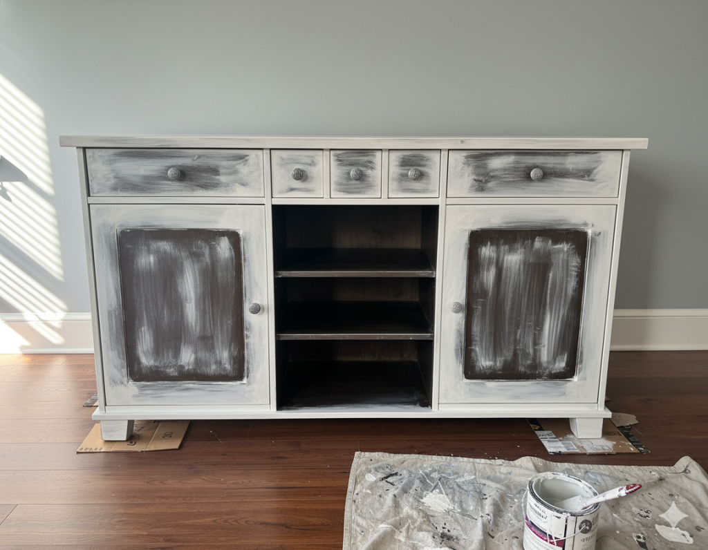 So she decided to give her old buffet a second life. Like many of us, she believed the paint label when it promised “no sanding required.” Spoiler alert: it lied.